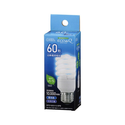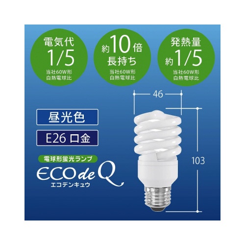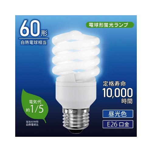 電球形蛍光灯 スパイラル形 E26 60形 昼光色