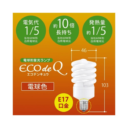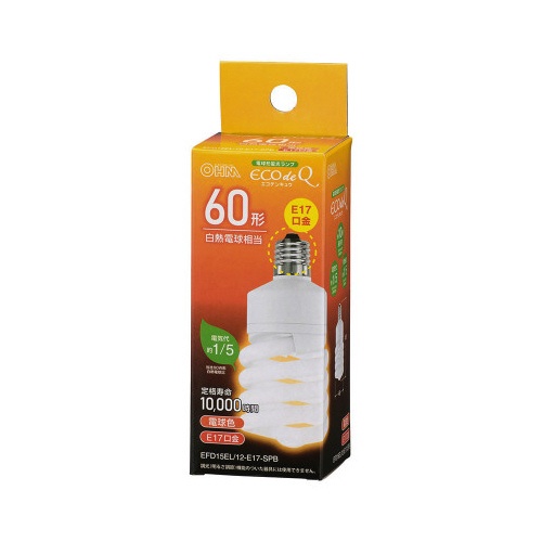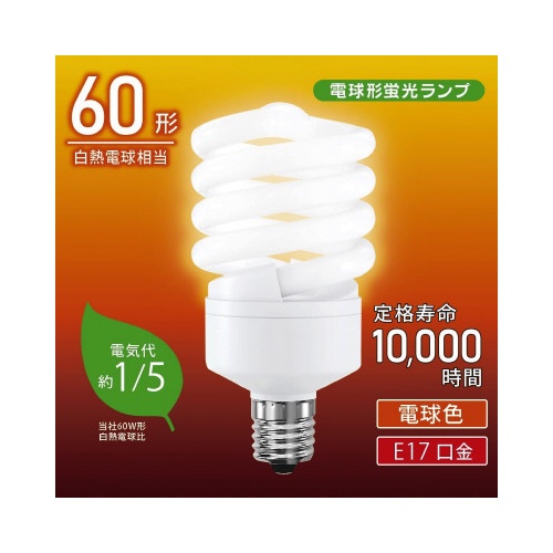 電球形蛍光灯 スパイラル形 E17 60形 電球色