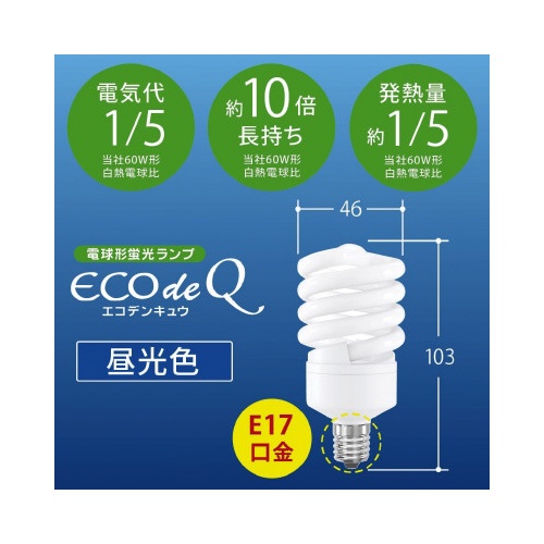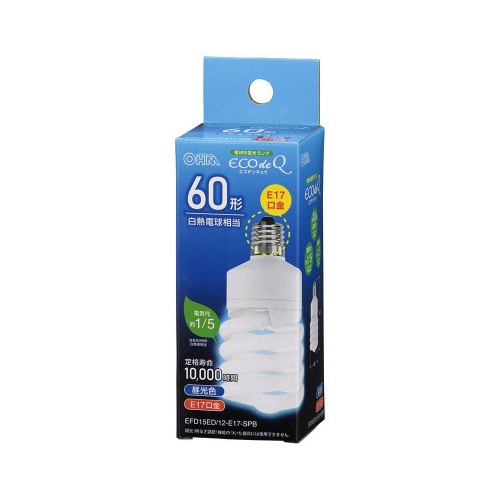 電球形蛍光灯 スパイラル形 E17 60形 昼光色