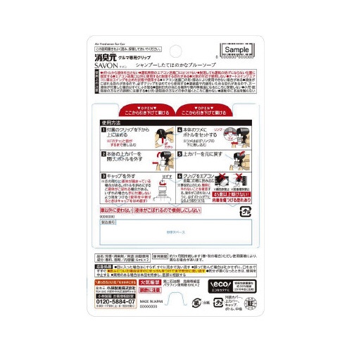 クルマの消臭元SAVONクリップ ブルーソープ2P