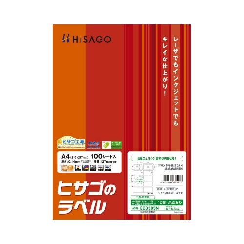 A4台紙ごと切り離しができるラベル10面余白有