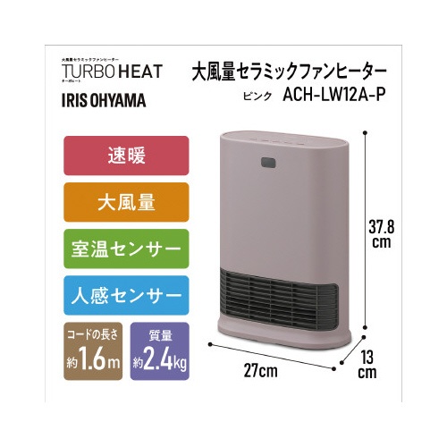 大風量セラミックヒーター Wセンサー ピンク