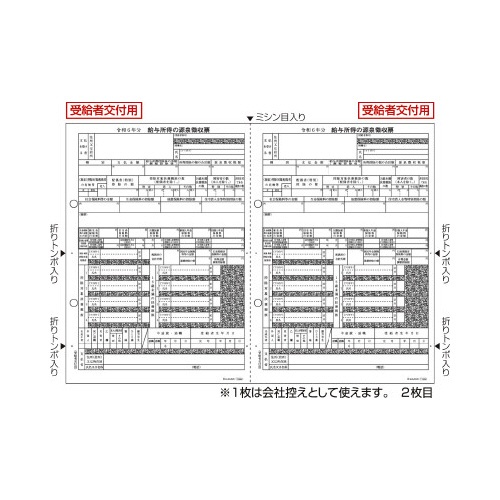注意事項 | ※東京都様式に準拠しています。他地域の方は、各提出先へお問い合わせのうえ、ご購入ください。版内容は法令の改正などにより、予告なく変わることがありますのでご注意ください。「市区町村提出用・税務署提出用」30枚、「受給者交付用」30枚が別々に入っています。交互になっていませんのでご注意ください。 ※【返品に関するご注意】開封後はお客様のご都合による返品はお受けできません。 以下の点にご注意ください