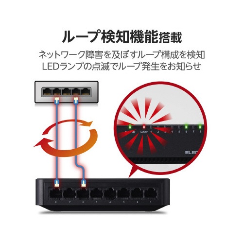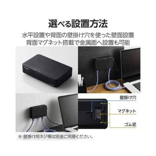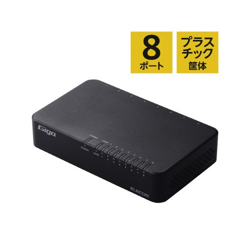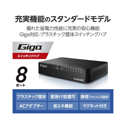 スイッチングHub 8P プラ 磁石 電源外付 黒