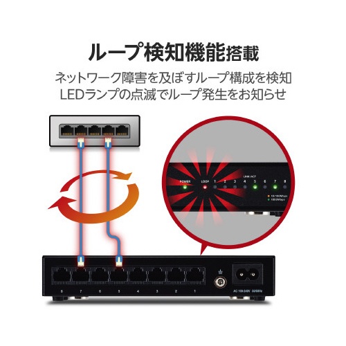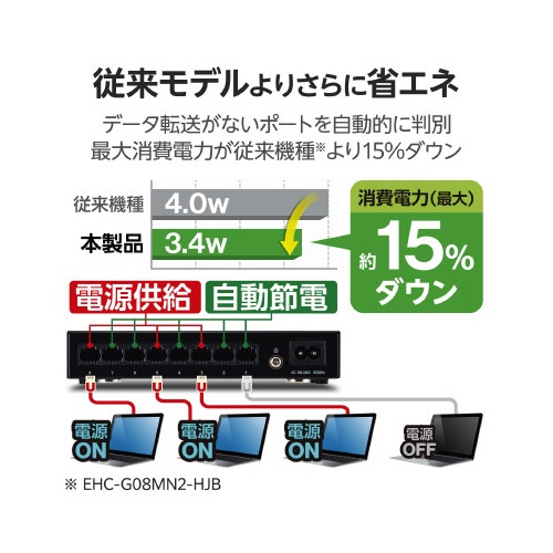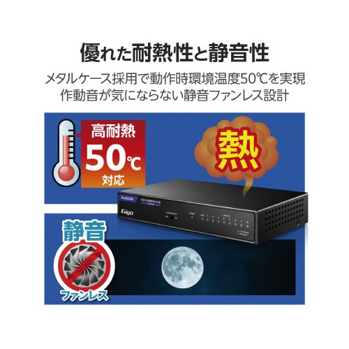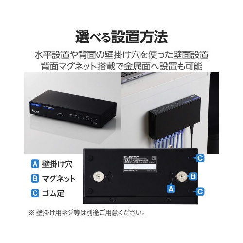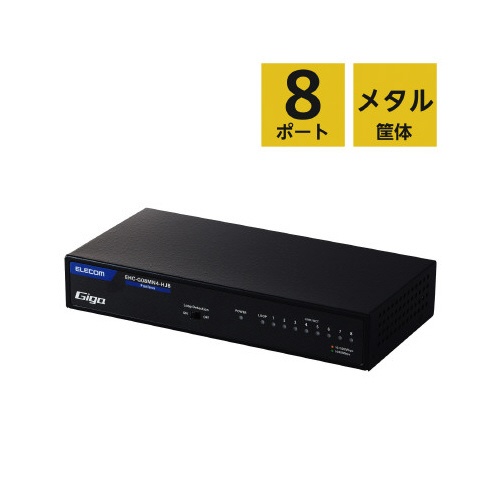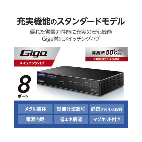 スイッチングHub 8P 金属 磁石 電源内蔵 黒