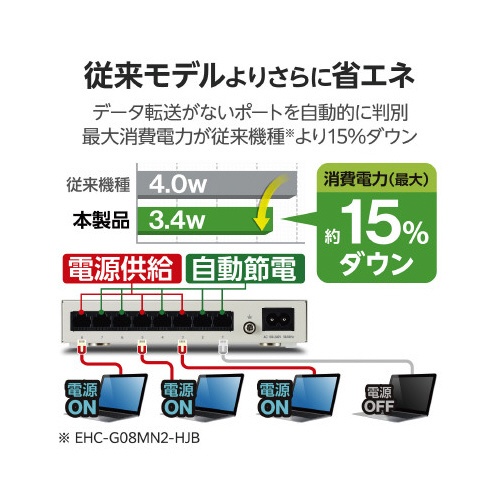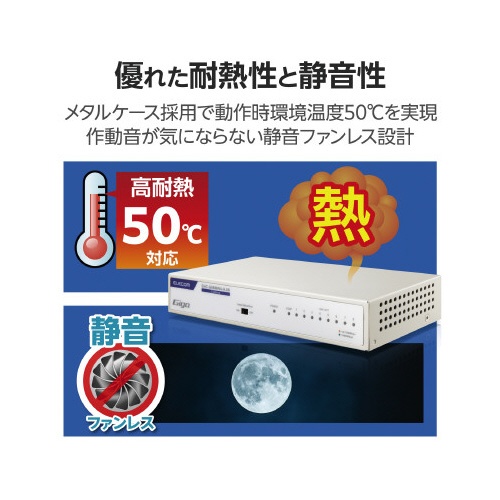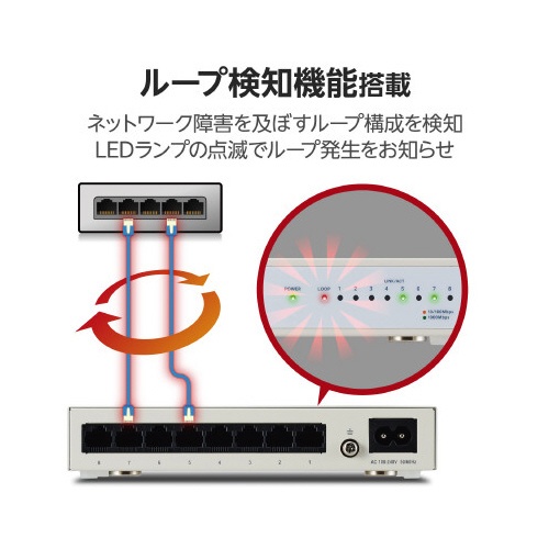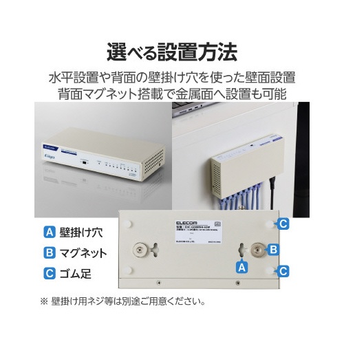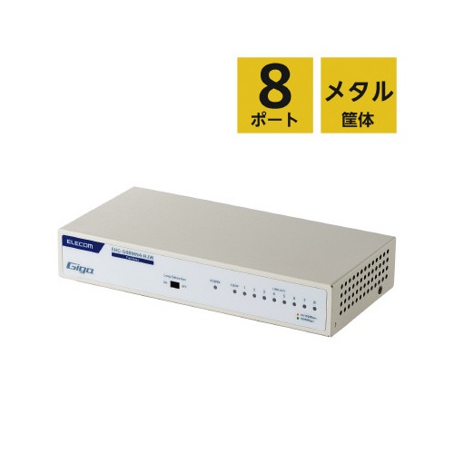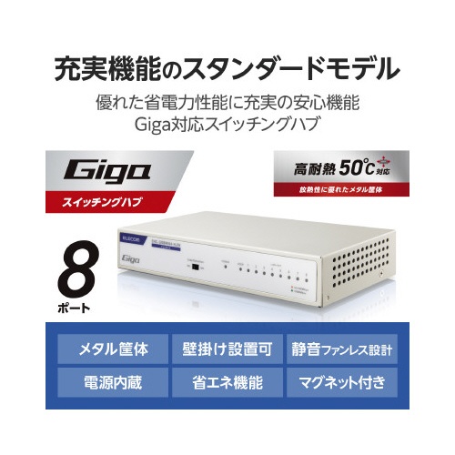 スイッチングHub 8P 金属 磁石 電源内蔵 白