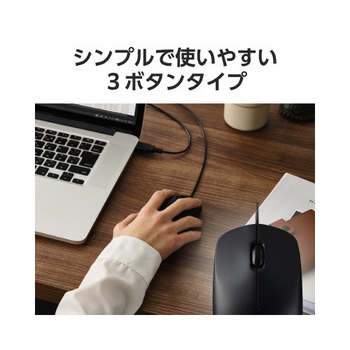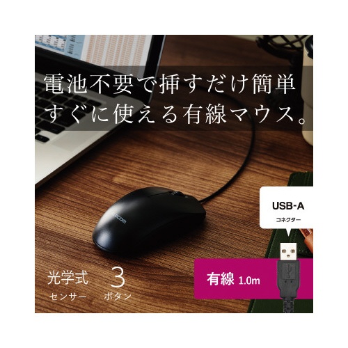 シンプルマウス 有線 3ボタン 黒