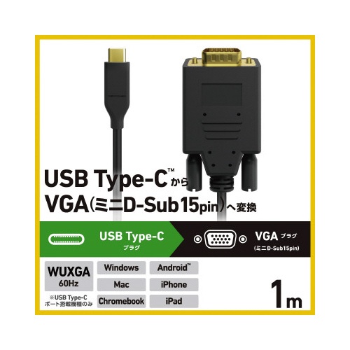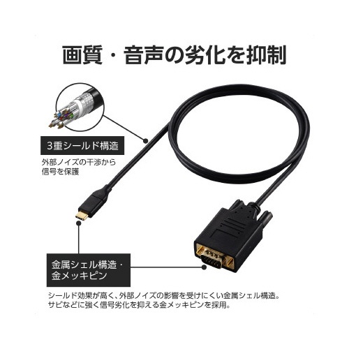変換ケーブル Type−C−VGA 1.0m 黒