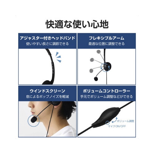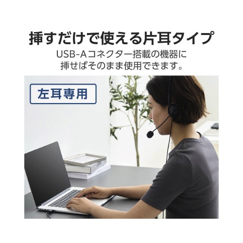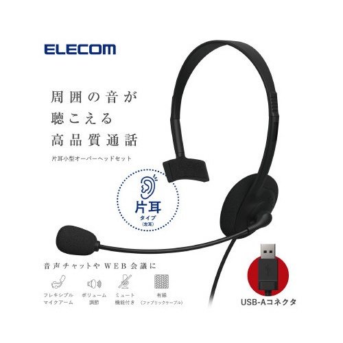 有線ヘッドセット 片耳オーバーヘッド USBA 黒