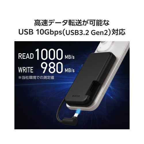 2. 外付けSSD ケーブル一体型 1TB 黒