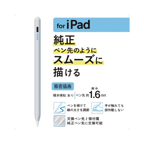 2. iPad用アクティブタッチペン 急速充電 シルバー