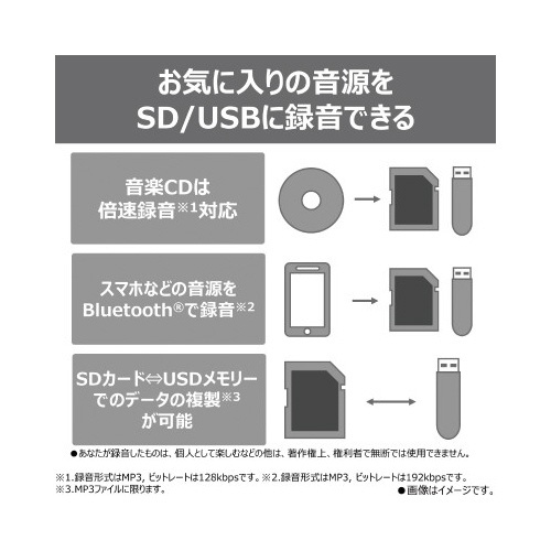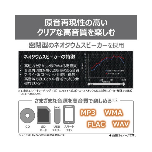 注意事項 | ※機能/BluetoothでSD/USBに録音が可能。 ※密閉型ネオジウムスピーカー搭載で縦型スリムでコンパクトな外観ながらに、臨場感のある高音質を楽しめます。 ※語学学習にもぴったりな機能がいっぱい。 ※ご使用の際は取扱説明書(包装台紙)をよくお読みの上、正しくお使い下さい。 ※【返品に関するご注意】開封後はお客様のご都合による返品はお受けできません。 以下の点にご注意ください