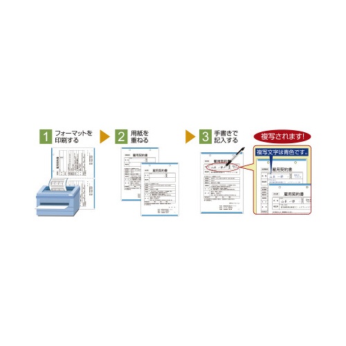 注意事項 | ※必要な枚数の下に必ず下敷きをお使いください。用紙の裏表を間違えますと複写されません。(品番の印刷されている面が裏面です。) ※両面印刷には対応しておりません。表面のみ印刷してご使用ください。 ※印刷の際は、トレイから1枚ずつ給紙してください。連続給紙した場合、給紙ローラーの跡が薄く発色することがあります。 ※ノーカーボン紙は化学反応で発色しますので、発色までに時間がかかる場合があります。 ※発色した文字の上から蛍光ペンでの書き込み、朱肉での捺印はお避けください。 ※【返品に関するご注意】開封後はお客様のご都合による返品はお受けできません。 以下の点にご注意ください