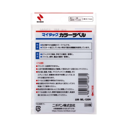 注意事項 | ※プリンターでは使用できません。人体や家具類・貴重品など破損して困るものへは貼らないでください。凹凸面、曲面、布面、プラスチック(フッ素樹脂、ポリエチレン)など、被着体の形状や材質によっては、はがれる場合があります。ラベルには押印は出来ません。貼る部分の汚れや水分、油分をよく拭きとってから常温にてご使用ください。乳幼児の手の届かないところに保管してください。ラベルは袋に入れ、照明や直射日光を避け、高温多湿にならないところで保管してください。 以下の点にご注意ください
