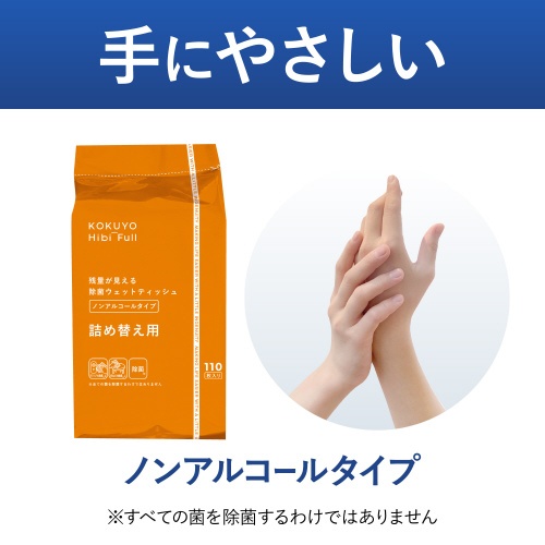 注意事項 | ※全ての種類の菌を除去するわけではありません。 ※本商品は詰め替え用です。 ※必ず「残りが見える除菌ウェットシートティッシュ(ノンアルコール・ボトル)」の容器に詰め替えてご利用ください。 以下の点にご注意ください