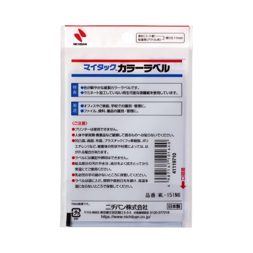 ※プリンターでは使用できません。人体や家具類・貴重品など破損して困るものへは貼らないでください。凹凸面、曲面、布面、プラスチック(フッ素樹脂、ポリエチレン)など、被着体の形状や材質によっては、はがれる場合があります。ラベルには押印は出来ません。貼る部分の汚れや水分、油分をよく拭きとってから常温にてご使用ください。乳幼児の手の届かないところに保管してください。ラベルは袋に入れ、照明や直射日光を避け、高温多湿にならないところで保管してください。
