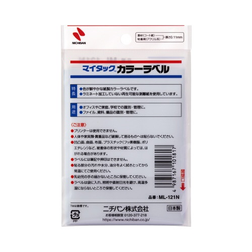 注意事項 | ※プリンターでは使用できません。人体や家具類・貴重品など破損して困るものへは貼らないでください。凹凸面、曲面、布面、プラスチック(フッ素樹脂、ポリエチレン)など、被着体の形状や材質によっては、はがれる場合があります。感熱紙、青焼コピー及びノーカーボン紙にはご使用にならないでください。貼る部分の汚れや水分、油分をよく拭きとってから常温にてご使用ください。乳幼児の手の届かないところに保管してください。ラベルは袋に入れ、照明や直射日光を避け、高温多湿にならないところで保管してください。 以下の点にご注意ください
