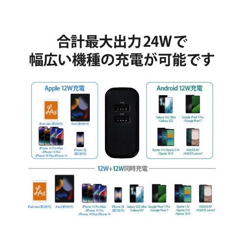 スマートフォン用AC充電器 4.8A 黒