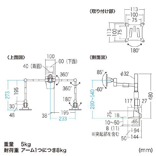 水平多関節液晶モニタアーム(左右2面)