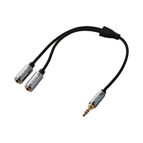 2. オーディオ分配ケーブルナイロンメッシュ0.2m黒