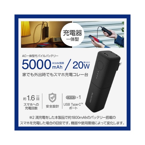 2. モバイルバッテリーAC一体5000mAhC1黒