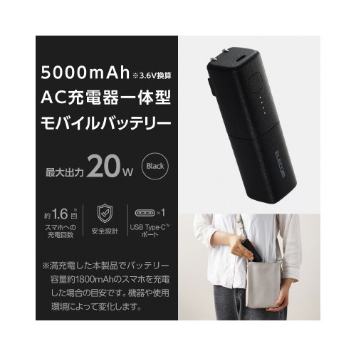モバイルバッテリーAC一体5000mAhC1黒EC
