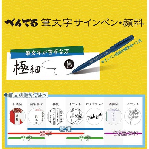 2. 筆文字サインペン 顔料タイプ 極細 5セット