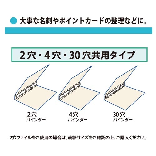 注意事項 | ※30穴のリフィールは、リング式(2穴)のファイルや2穴のファイルにも使用できますが、使用するファイルの表紙サイズをあらかじめご確認ください。 ※コピー用紙や印刷物などは、よく乾燥させてから挿入してください。印刷物によっては、シートに波打ちや反りが発生する場合があります。 以下の点にご注意ください