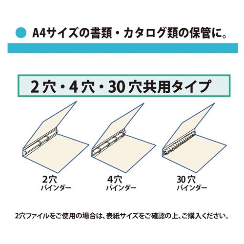 注意事項 | ※30穴のリフィールは、リング式(2穴)のファイルや2穴のファイルにも使用できますが、使用するファイルの表紙サイズをあらかじめご確認ください。 ※コピー用紙や印刷物などは、よく乾燥させてから挿入してください。印刷物によっては、シートに波打ちや反りが発生する場合があります。 以下の点にご注意ください