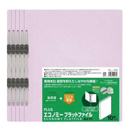 エコノミーフラットファイルA4縦 紫 10冊×3