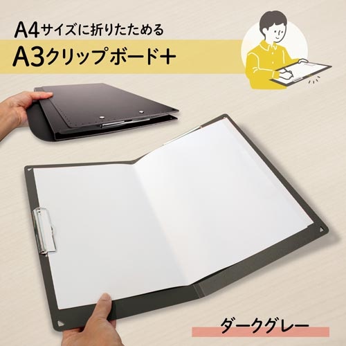 A4サイズにおりたためるA3クリップボード黒 6冊