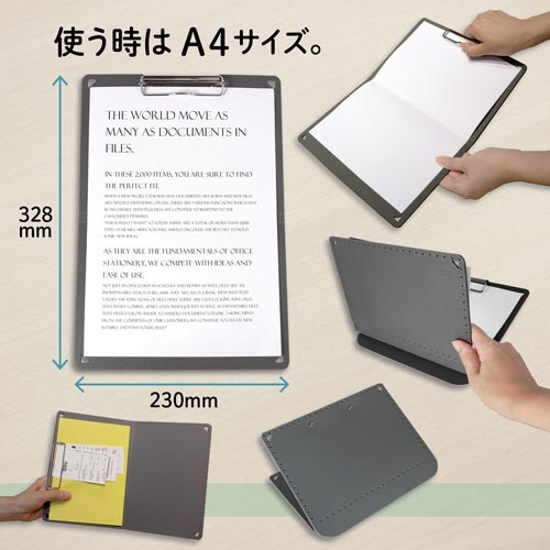 A5サイズにおりたためるA4クリップボード黒 3冊