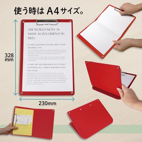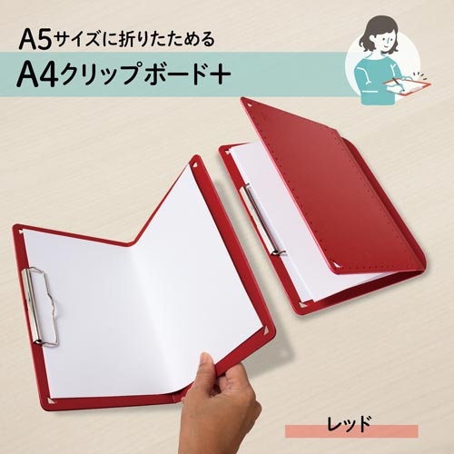 A5サイズにおりたためるA4クリップボード赤 3冊