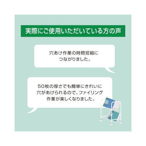 | 注意事項 | ※掲載穴あけ枚数は全てPPC用紙64g/平方メートル(55kg)の場合の最大枚数の目安です。紙種や綴じ方によって、開けられる枚数が少なくなることがあります。 以下の点にご注意ください