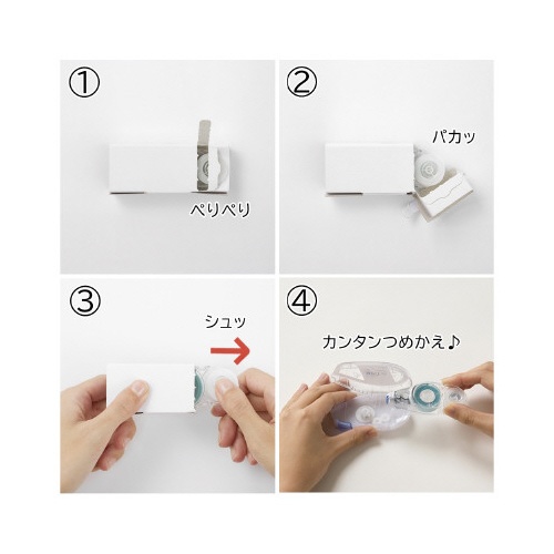 | 注意事項 | ※テープをつめ替える時は必ずヘッドカバーを開けてください。 ※テープたるみの原因となりますので、本体はつめ替えテープ10個分を目安に新しいものに交換してください。 以下の点にご注意ください