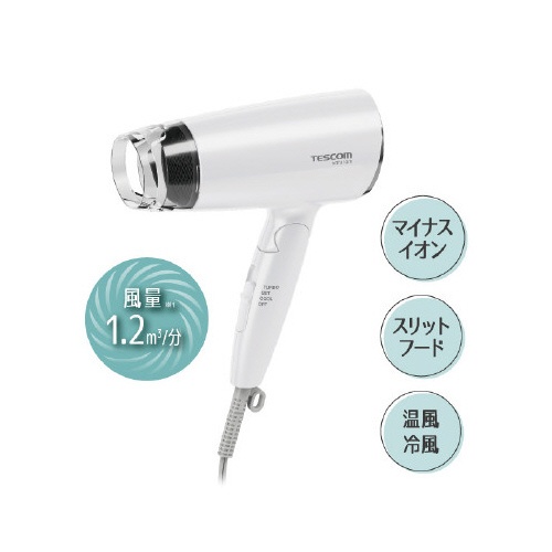 | 注意事項 | ※付属品/スリットフード ※電源/AC100V50/60Hz ※スイッチ/TURBO−SET−COOL−OFF ※折りたたみ/○ ※温風温度/110度(周囲温度30度の場合、TURBO使用時) ※風量(m3/分)/1.2m3/分(TURBO使用時) ※搭載イオン/マイナスイオン ※【返品に関するご注意】開封後はお客様のご都合による返品はお受けできません。 以下の点にご注意ください