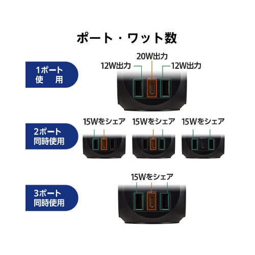 注意事項 | ※USB端子形状/USBType−C(TM)ポート×1、USB−Aポート×2 ※AC側定格/14A125V1400Wまで ※【返品に関するご注意】開封後はお客様のご都合による返品はお受けできません。 以下の点にご注意ください