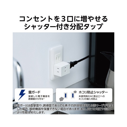 注意事項 | ※極性対応/× ※スイッチ/× ※雷ガード/○ ※ほこりシャッター/○ ※抜け止め機能/× ※通電表示ランプ/× ※二重構造/○ ※絶縁キャッププラグ/○ ※スイングプラグ/× ※ブレーカー/× ※カラー/ホワイト ※材質/ABS樹脂、ユリア樹脂、黄銅 ※外形寸法/幅約51mm×奥行約33mm×高さ約37mm ※プラグ部除く ※【返品に関するご注意】開封後はお客様のご都合による返品はお受けできません。 以下の点にご注意ください