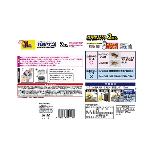注意事項 | ※使用方法厳守 ※本来の用途以外に使用不可 ※内容物を取り出さない ※食べられません。誤って食べた場合はすぐ吐き出させ、直ちにジノテフラン(ネオニコチノイド系殺虫剤)を含有する製剤であることを医師に告げ診療を受ける ※手や皮膚についた場合は石けんでよく洗う ※アレルギー症状やかぶれを起こしやすい体質の人は注意して使用 ※中の液がこぼれないよう注意 ※内容物がこぼれた場合は直ちにふき取る ※チョウバエ(浴槽・洗面所等で発生)、キノコバエ(観葉植物付近等で発生)等種類によっては誘引されません ※子供や認知症の方・ペットが誤って食べたり遊んだりしないよう、玩具や食品・飼料と区別して保管 ※火気付近、直射日光、高温を避け涼しい所に保管 ※廃棄の際は自治体の指示にしたがう 以下の点にご注意ください