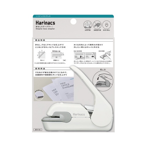 注意事項 | ※針を使用するステープラーと同等の保持力はありません。 ※用紙の種類(厚みや紙質など)によっては、とじ枚数が少なくなることや保持力が弱くなることがあります(感熱紙、複写伝票など)。 ※トナーが付着した箇所、用紙の種類(厚みや紙質など)や環境(極度の乾燥など)によっては、とじが弱かったり、とじ枚数が少なくなったり、とじられないことがあります。 ※用紙をとじる際に、跡がつきます。 ※刃先や可動部などのすき間に指や手を入れないでください。 ※金属(ステープルやゼムクリップ)などを取り除いてから紙をとじてください。 ※規定枚数を超える用紙、フィルム、布、ビニール、金属などの用紙以外のもの、テープ・シールなどの粘着物のついたものをとじないでください。 以下の点にご注意ください