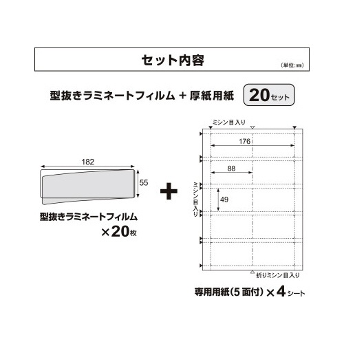 注意事項 | ※【返品に関するご注意】開封後はお客様のご都合による返品はお受けできません。 ※ご使用にはラミネーター(最大ラミネート幅100mm以上の機種)とプリンタが必要です。 ※必ず専用の用紙とセットでご使用ください ※お使いのラミネーター付属の取り扱い説明書をよくお読みのうえ、正しくご使用ください。 ※ミシン目から切り離した用紙を、プリンタに通さないでください。 ※レーザプリンタ・コピー機で両面を印刷する場合は、両面印刷可能な機種をご使用ください。 以下の点にご注意ください