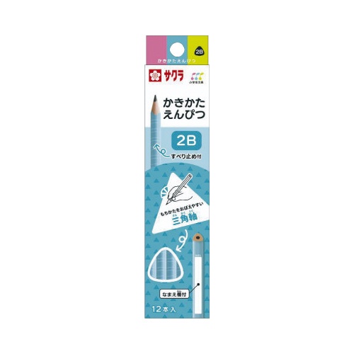 小学生文具かきかた鉛筆三角軸滑り止め付2B ブルー