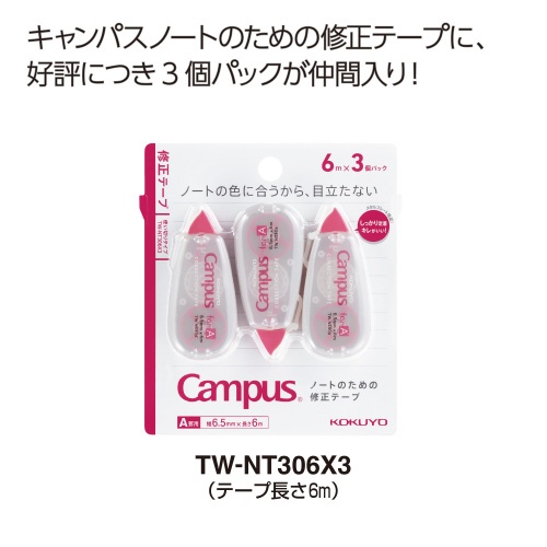 キャンパス修正テープ使い切り6.5mm幅6m 3P