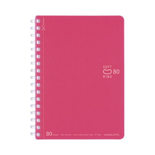 ソフトリングノートドット入罫線A6ライトピンクx5