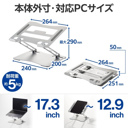 ノートパソコンスタンド 折りたたみ 放熱 シルバー