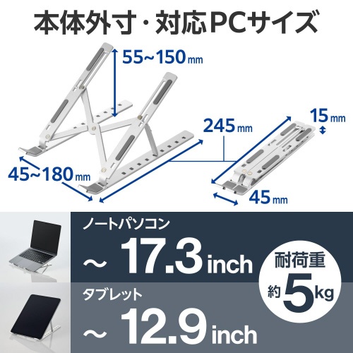 ノートパソコンスタンド 折りたたみ式 シルバー