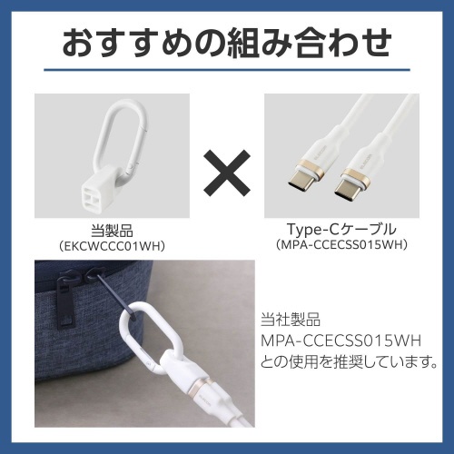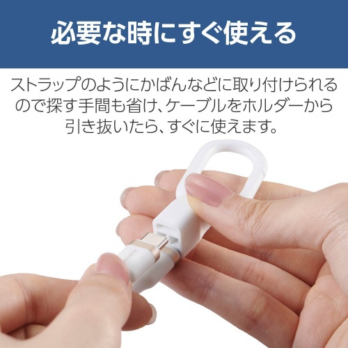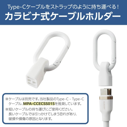 ストラップ型ケーブルホルダー カラビナ付 ホワイト