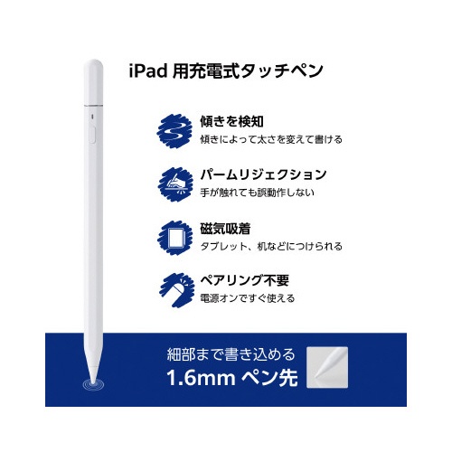 タッチペン iPad用 コネクタカバー付 ホワイト