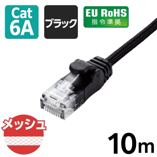 LANケーブルCAT6A準拠 10m メッシュ 黒