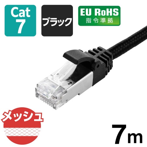 2. LANケーブル CAT7 7m メッシュ ブラック
